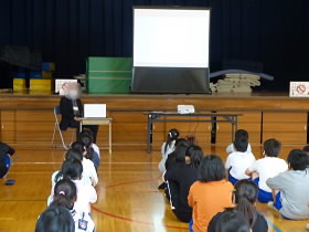 5日土曜日、子ども司書の閉校式が行われました。教育長を前にちょっと緊張。