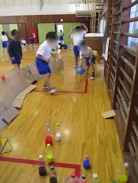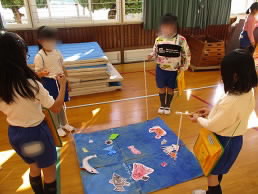 こらして遊びました。景品も貰えて、子どもたちはみんな嬉しそうでした。