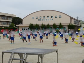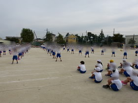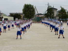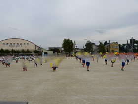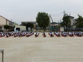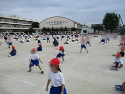 本日、業間運動で1・4・5年生が反復横跳びに取り組みました。