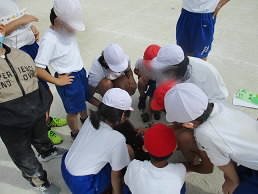 記録会では、4・5・6年生のリレーのタイムを計測しました。