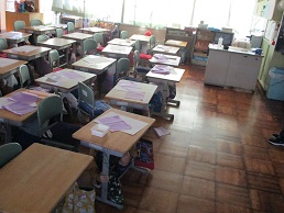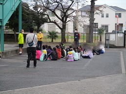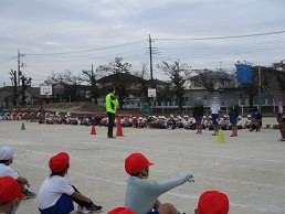 本番に向けて、引き締まった表情で、教頭先生の話を聞いていました。