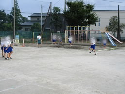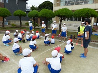 1年生の体育。正確にけることができるかな?。次からはいよいよゲーム!負けないぞ!