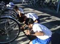 生徒たちが普段利用している自転車置き場にも、雑草は生えています。細かい雑草までしっかり抜いています。