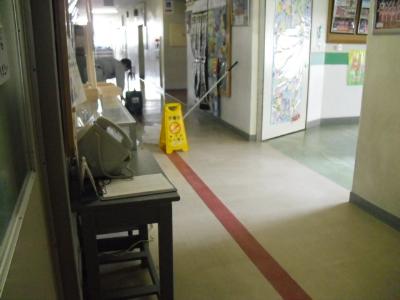 新年度に向けて、北中学校では現在廊下・床のワックスがけを