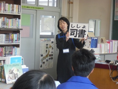 これは図書館司書による「図書室の利用のしかた」についての授業となっています。