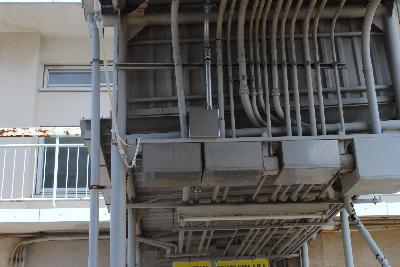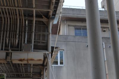 今年は例年のように暑い日が続いています。本校の北校舎と本校舎と体育館とを結んでいる渡り廊下に、この度お手製の「ミストシャワー」が設置されました。