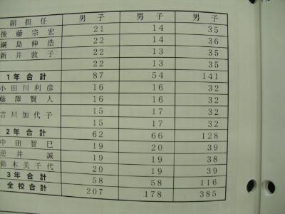 この年の生徒数は400人を切っています。現在では宅地が増えたり本校の特色が受け入れられてきたりということもあり、生徒数は増加の一途をたどっています。今年度は現在466名。2年で約2クラス分増えたことになります。