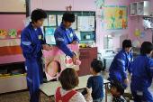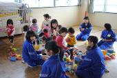 3年生の家庭科の授業では、保育実習をクラス毎に行っています。先週は3-3が近くの保育所にて実習を行いました。それぞれのグループが作成したおもちゃを楽しそうに遊んでいる園児たち。生徒たちもなんだかうれしそうですね^^