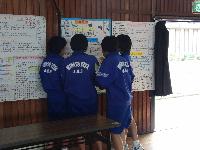 進路担当の先生から説明を受けながら、各高校等の資料や、昨日発表で使ったポスター(壁新聞)を参考に、生徒たちが実際に見に行きたい学校を決めていきました。