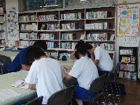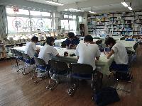 図書館は北中学校の数少ないエアコンが導入されている教室のため、7月から様々な補習をここで実施しています。少人数で数学の課題に取り組んでいる生徒たちの様子が見られました。
