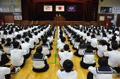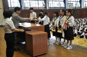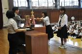 校長先生からお話をいただいたあと、代表生徒による2学期に向けての抱負を発表し、そのあと夏休み中に活躍した部活動に対する賞状の授与が行われました。