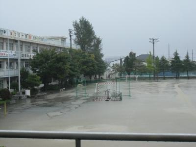 【今日の7時50分頃の北中学校・雨風が強くなってきました】