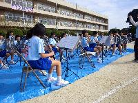毎年恒例の三郷市民体育祭が市内各地で行われ、本校の吹奏楽部は彦成地区の体育祭に参加しました。本校の吹奏楽部は、ここ数年体育祭での演奏を行っており、地域ではおなじみとなっているようです。