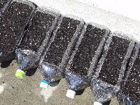台風が連続してきていたこともあり、予定よりも少々遅くなりましたが、ペットボトルを使って野菜の種を植えました。前回お知らせしたとおり、自分で好きな野菜を選んで種を植えているので、この写真では芽が出てくるまでどの野菜をペットボトルで育てているかわかりにくいですが、ご了承ください。