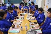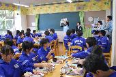 普段の給食時に使っている食器と違い、ランチルームの給食時は陶器の茶碗や味噌汁椀など、普段の食事で使っているような食器に盛られています。
