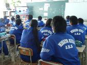 今日の3時間目、3年2組の教室には越谷税務署の方を講師にお招きし、租税教室が行われていました。撮影時にはご用意頂いたDVDを視聴しているところでしたが、生徒たちは食い入るように見ていました。税金の使われ方がとてもわかりやすい内容でした。この1時間で、税金についての知識が今までよりも増えたことでしょう。