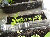 技術の時間に育てているペットボトル栽培の野菜たち。