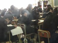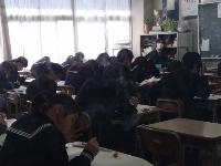 今日は3年生にとって学校で実施する最後の実力テストです。私立受験を間近に控え、緊張感をもって試験に取り組む生徒の様子をうかがうことができました。