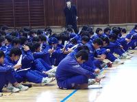 いよいよ、来週月曜(火曜日にも実施する学校有り)、県公立高校の入学者選抜が実施されます。本番前の最後の時間に、体育館にて当日の注意点などを確認していました。今できることは、当日慌てないように準備することと、風邪をひかないように気を付けることです。がんばってください。