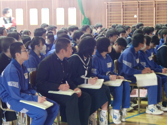 先日各クラスで行われたディベート予選を勝ち上がった代表グループが、体育館で行われた本選に臨みました。お題は予選と同じ3本。肯定派否定派がそれぞれ資料を用意し、与えられた時間の中で発言を行いました。今回は生徒の代表が司会、審判、計時担当という役割も与えられ、生徒たち主体で行うことが出来ました。