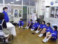 来週の水曜日から実施する爪の検査について、1年生の保健委員ははじめてということもあり、金曜日の昼休みに保健室で集まって保健委員長からの説明を受けました。1年生の保健委員からはいくつかの質問が出て、疑問点は解消できたようです。※人数が少ないのは、この日通信陸上市内予選に出かけていた生徒が数名いたためです。