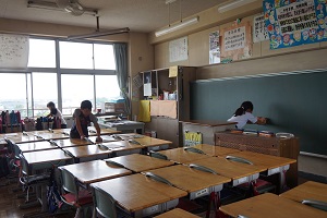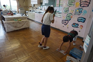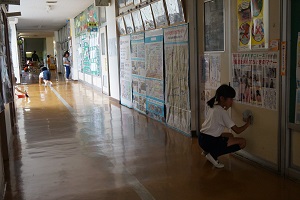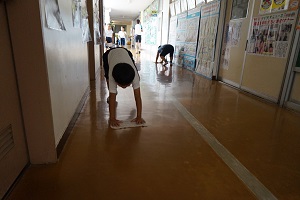 彦郷小の掃除の時間はいつも静かです。これは、彦糸中学校区で取り組んでいるもくもく清掃の様子です。アクティブ彦郷らしく自分で考え、自分で行動しいつもピカピカに掃除しています。自分の分担が終わった子から、手伝いや汚れている所を見つけきれいにしています。みんなの力で、明るいきれいな学校を作っているのですね。