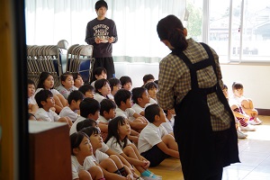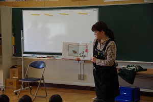 本日、3時間目に北部図書館の皆さまをお招きして、ブックトークをしていただきました。本の読み聞かせや、本の紹介、トリックアートなどの面白い本を教えていただきました。みんな、真剣に話を聞きとても素晴らしい姿勢でした。本の楽しさに気付き、さらに本が好きになったことと思います。