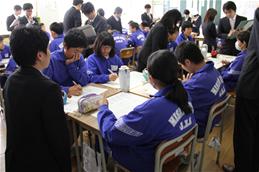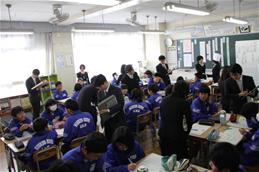今日の2年2組では、筑波大学教育学部の大学院生による「検証授業」を行いました。また、この授業の様子は、筑波大学の先生方が参観されました。
