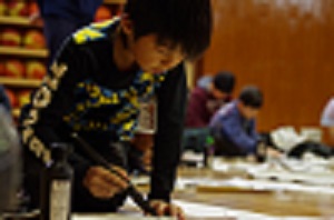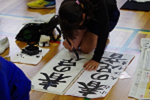 1時間目から4時間目にかけて、書き初め競書会が行われました。この日のために、書写の学習や昼休みを使って練習を重ねてきました。どの学年も一人一人真剣に取り組み書きあげていました。集中力、とても立派でした。