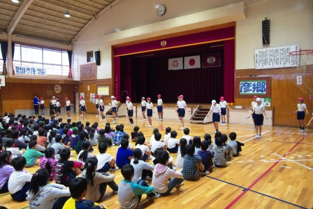 交差飛びや二重跳びなどを繰り広げると、低学年からは「お-!」と歓声が上がりました。