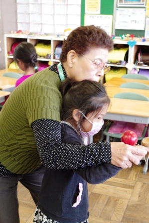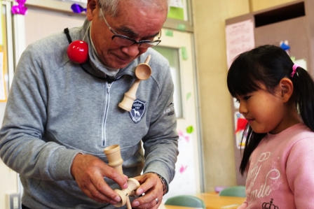 初めてだった前回とは違い、上達して発展した遊び方をしている児童も見受けられました。 (けん玉で『もしもしかめよ~に併せてました』)