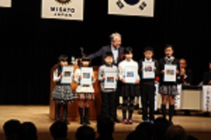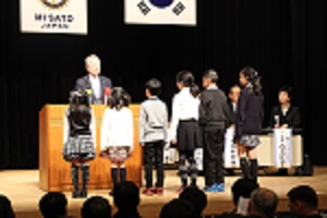 本日、鷹野文化センターで日韓児童画展の表彰が行われました。各学年代表一名の絵を出展していました。表彰式では休みの日にも関わらず児童全員が参加でき、立派な態度で賞状を受け取ることができました。一人一人が、堂々とした大きな声で返事をすることができとても素晴らしいです。 保護者の皆様、お休みの日に本当にありがとうございました。