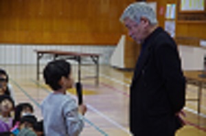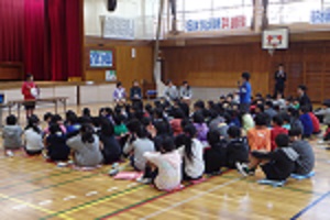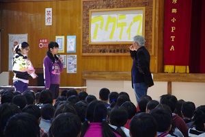 本日、3、4時間目に作家の小林豊先生をお招きして、著書の話や、海外を旅したお話などしていただきました。気温が暑く乾燥している国のお話を聞いて子ども達は、あまりの気温の差に驚いていました。 人との出会いが大切というお話を真剣に聞いていました。これからいろんな人と出会います。その出会いを大切に大きく羽ばたいてほしいです。
