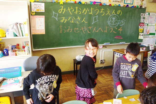 商品は1年生が描いた絵の品物で、園児達はお手製の財布とカバンを