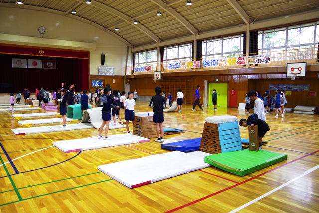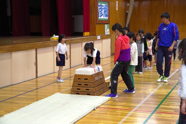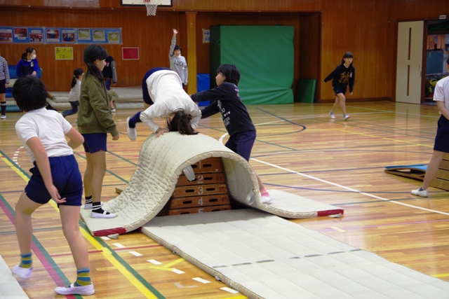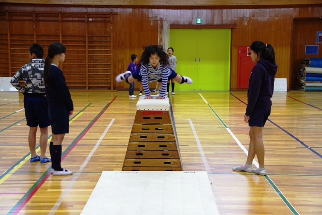 昼休みに体育館で「跳び箱教室」が開かれました。
