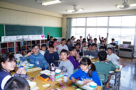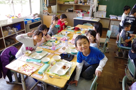 一年間、児童・職員の楽しみだった給食が、本日最終日となりました。 好きな物や苦手な物もたくさんでたかもしれませんが、美味しく食べられたでしょうか。 彦郷小は、市内でも残菜の少ない学校です。 素晴らしい事ですね。 また、放送委員さんは毎日楽しいお昼の放送をありがとうございました。 だんだんと話すのにも慣れてきて、とっても滑らかにアナウンスをしてくれましたね。 給食委員さんは、短い時間の中でてきぱきと片付けてくれましたね。 ありがとうございました。 そして、一年間毎日美味しい給食を作って下さったセンターのみなさま、 どうもありがとうございました!