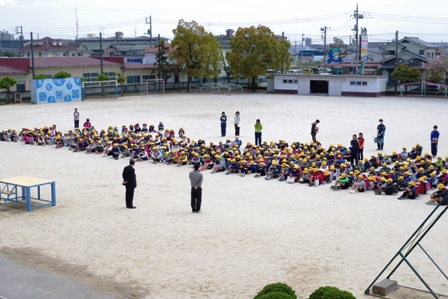1年生は班長さんが教室まで迎えに行き、集合場所までしっかり案内をしていました。手を引いて歩いている様子を見て、とても頼もしく感じました。
