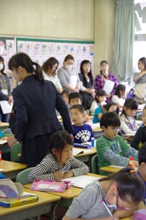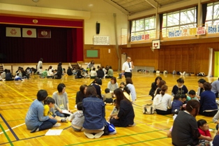 授業参観の際、体育館では1年生が「親子の学習」を行っていました。