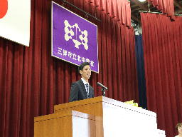 皆さんこんにちは。(中略)私は今日、とても楽しみに北中学校へ来ました。今も話がありましたが、やはり個人的には2・3年生の皆さんに会えるのが、とても楽しみという気持ちがありました。今、このように見ることができて、去年1年間北中でやったことがとても思い出されて、懐かしい気持ちでいっぱいです。(中略)本日皆さんに何か一つ話をしようかと思って、最近読んだ「生き方」という本の中にあった言葉を紹介したいと思います。この本には目標や夢を叶えるためには、そのことが鮮明にまたは明瞭にイメージできていないとその目標はなかなか叶うことは難しいと書いてありました。(中略)皆さんも目標や夢があると思いますので、イメージを鮮明に持てるように日々の生活を一所懸命に過ごしてもらって、これからの学校生活に生かしてもらいたいなと思います。本日は本当にありがとうございました。早稲田中の方で頑張りますので、皆さんも北中の方で頑張ってください。応援しています。