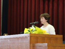 こんにちは。久しぶりです。私は今年で仕事を辞めることにしていましたので、今の3年生と同じことだと思いますが、一つ一つの行事がこれが最後だなと思っていました。3年生の皆さんは今度はそういうふうになるので、ぜひしっかりと味わって生活してください。北中の思い出をいっぱい作ってください。1年生の皆さんはようこそ北中へ。私はもう北中の職員じゃありませんから、ようこそという気持ちでいっぱいです。とても先輩たちは安心できる人たちですし、北中で良かったなと思えると思います。(中略)退職したら時間がいっぱいあると思っていました。好きなことを好きなだけできると思っていました。けれども意外とそうではない。私にとっての24時間は24時間でしかない。皆さんもそうですが、それしかなかったんです。もっといっぱいというのは感覚の問題でした。時間が足りなくなってきたなという感じです。これから過ごす中学校の時間をよく味わって、私はこれをしていたんですよっていえるような時間を過ごしてほしいなと思います。それから元気に過ごしてください。元気でないと心まで元気がなくなってしまうと思います。ぜひ助け合って元気に過ごしてください。今日はありがとうございました。