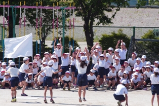 朝から応援合戦の練習に熱が入っています。 大きな声で全力で頑張っていました。 赤・白・青とそれぞれ組ごとに個性的な歌と動きがあります。 どんな仕上がりになるか。 本番が楽しみですね。