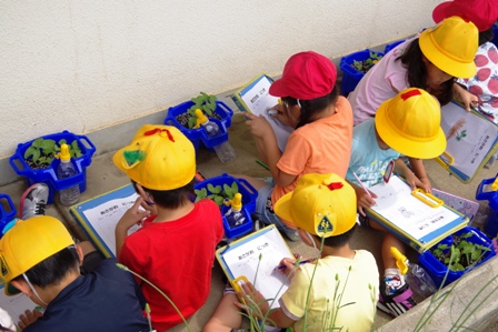 元気に生えた葉っぱの枚数や、形、向いている方向を真剣に観察しながら