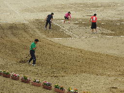 昨日の雨の影響が心配された今日の運動会でしたが、予定通り行うことができました。昨日の雨でぐちゃぐちゃになったグランドを朝早くから整備した先生方や、生徒たち。テントの中の机やいすを拭いてくれた人、会場をショーアップする北中運動会の歴史(明日公開します)を張り出した人たち…。開会式に至るまでにもドラマはありました。