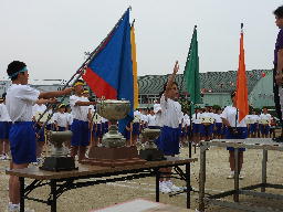 そしていよいよ開会式。グランド中央に走って集合し、三旗を掲揚しました。