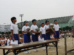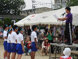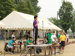 優勝チームに賞状と優勝カップが校長先生から手渡され、各クラスの代表生徒から感想が発表されました。その後教頭先生から講評をいただき、第51回運動会は幕を閉じました。