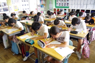 みんな真剣に取り組んでいて、児童の緊張が伝搬したのか教室の空気も
