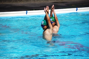 水慣れとして、「けのび」や「流れるプール」を行いました。