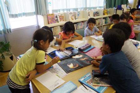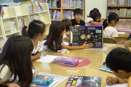 今回は「宇宙」がテーマで、各班ごとに本を使いながら調べて、