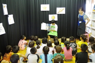 昨年度の子ども司書のメンバーが彦郷小学校に来てくれました。 図書室で行われた工作会で、読み聞かせをしてくれました。 昨年度、熱心に取り組んだ「読み聞かせ」は今も見事なものでした。