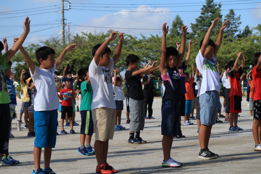子供たちは元気に体操をして、気持ちの良い汗をかいていました。 朝早くから、地域の皆様にもご参加いただきました。有り難うございます! 参加した人には景品が配られ、みんな嬉しそうにもらっていました。 体操が終わった後に、自由参加の運動も行われました!